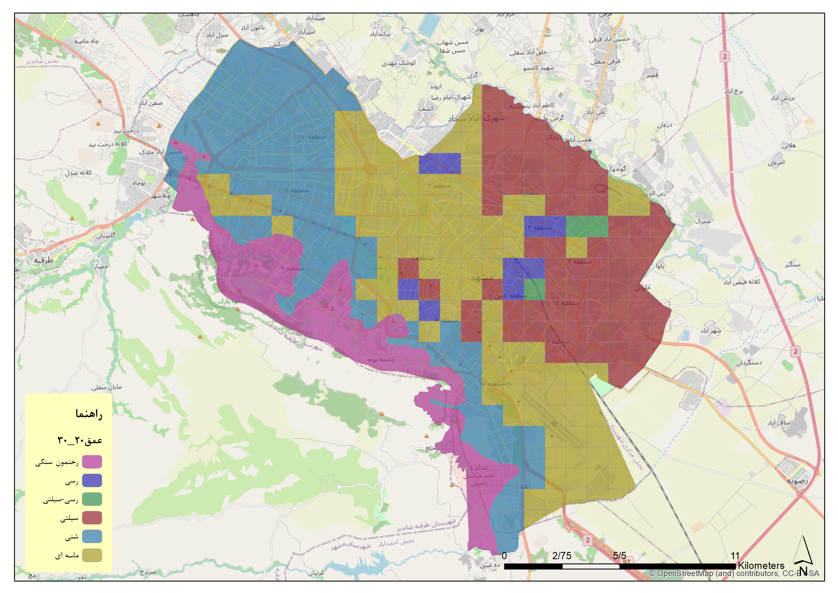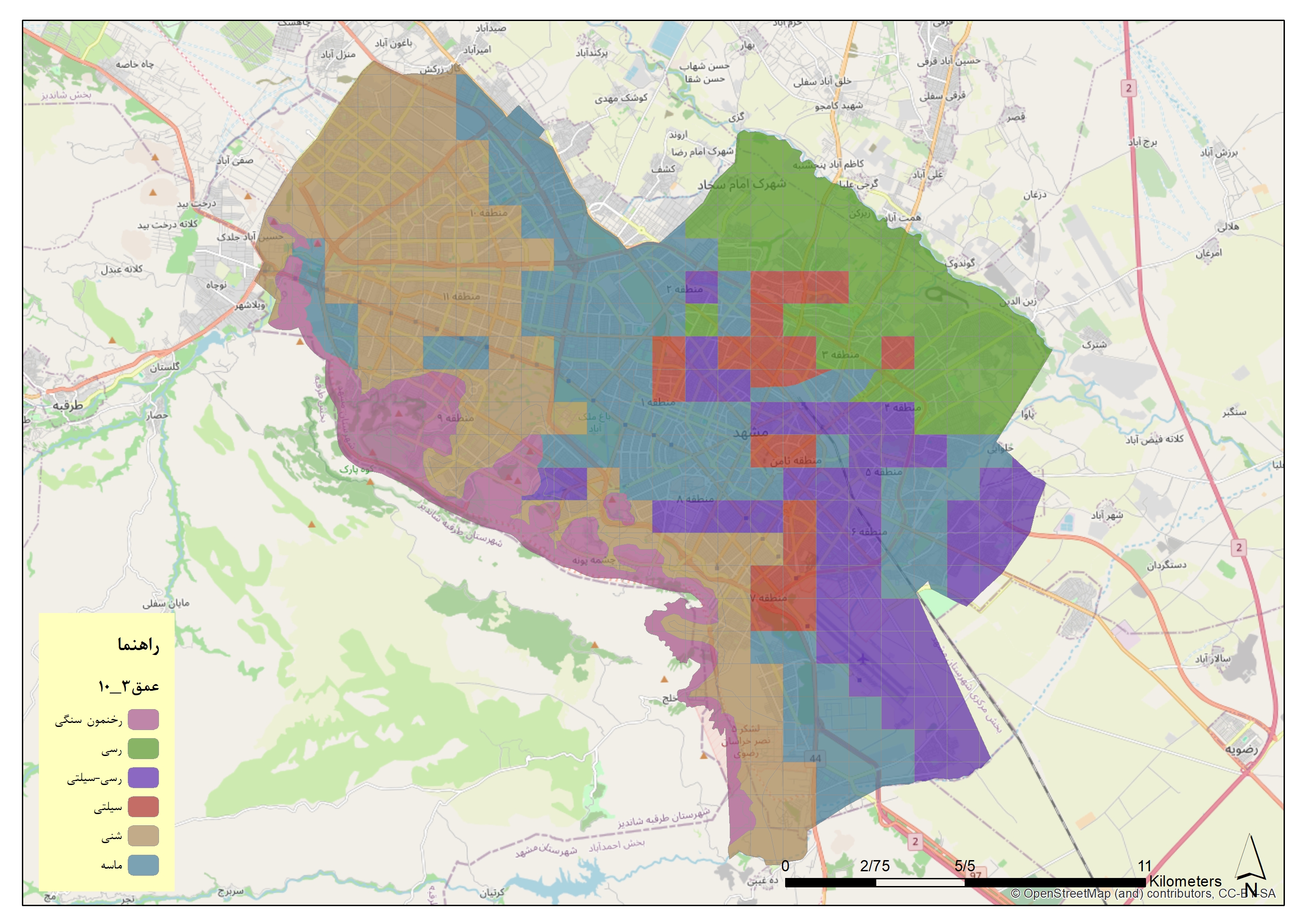 کاربرد اصلی این لایه بافت خاک در حوزههای مهندسی عمران و برنامهریزی شهری است. دادههای این لایه مبنای تحلیل فرونشست زمین، ارزیابی ریسک خاکبرداری، تعیین نوع فونداسیون مناسب برای سازههای مختلف و بررسی ریسک زمین قبل از احداث پروژههای بزرگ است. لایه عمق خاک مشهد همچنین برای مطالعات ساختوساز، مدیریت منابع خاک و پیشبینی ریسکهای مرتبط با خصوصیات زمینشناسی ضروری میباشد.